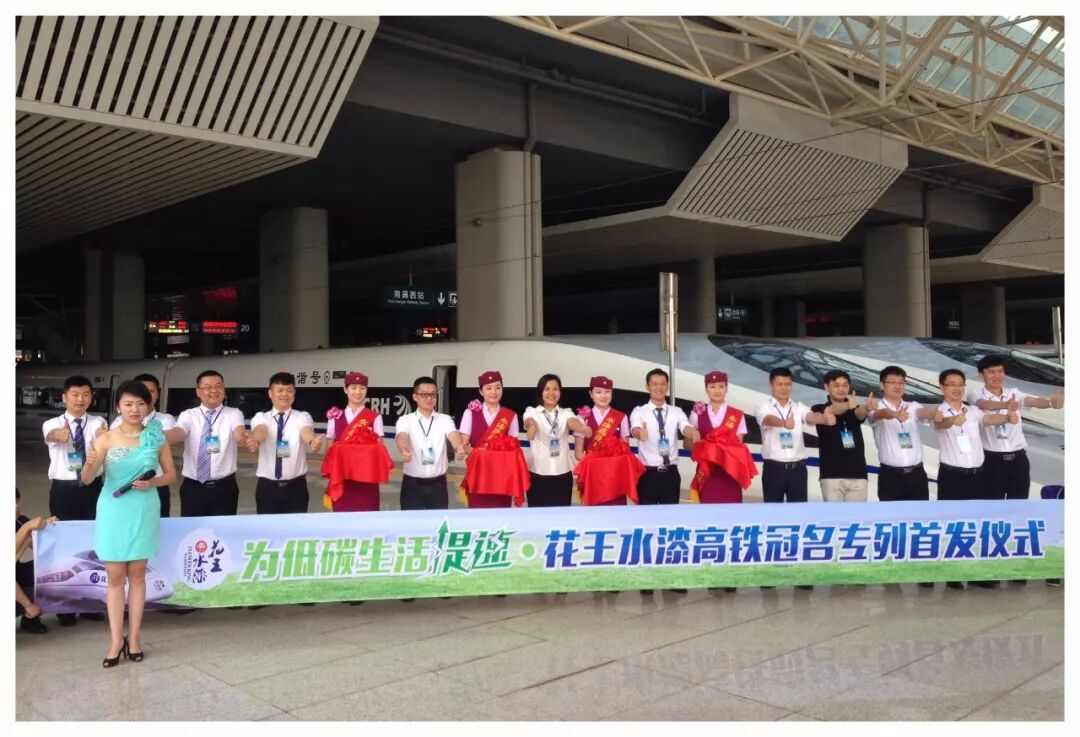 我们就拿2015年6月5日,也即花王水漆成立的首年来说,便迎来了中国・南昌西高铁站的一场盛大的高铁冠名仪式——花王水漆品牌发布会暨花王水漆高铁冠名专列首发仪式。也许不少人认为,企业冠名不是什么新意,但以一家全新成立的品牌角度来看,其一掷千金成为国内第一个冠名高铁的水性涂料品牌的举措,足以证明其创始人方学平先生追求绿色风尚,打造健康生态的雄心壮志!